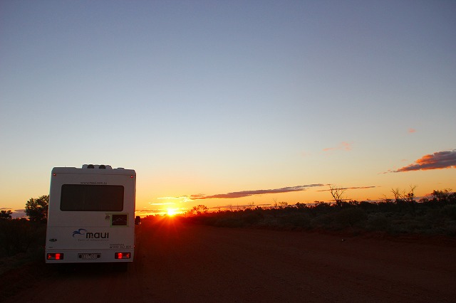 大自然の真っ只中。当然、電気も街灯もないから何も無いから、日が暮れる前に、闇に包まれてしまう前にTarcoolaに着かなければ!!